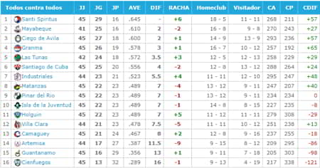 De manera que esta fue la segunda victoria consecutiva del equipo azul sobre la representación de Santiago de Cuba y ahora los indómitos han descendido en la tabla de posiciones hasta el sexto peldaño y por tanto tienen ya un total de cinco equipos por encima, entre ellos los inspirados Gallos de Sancti Spíritus que sumaron su sexto triunfo consecutivo y dominan la cumbre en solitario con dos juegos de ventaja sobre sus más cercanos seguidores: Huracanes y Tigres.