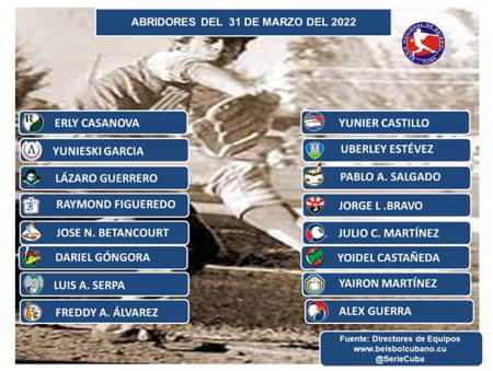 Para concluir les presento los lanzadores anunciados para abrir los juegos de este jueves, fecha de cierre de la subserie número 18 del presente campeonato cubano de béisbol: