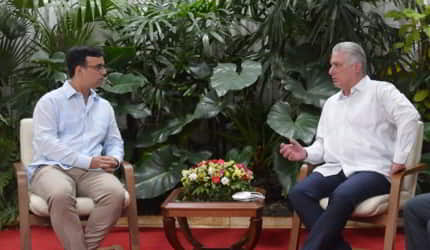 «Compartimos experiencias mutuas en el sector cooperativo y el desarrollo local, así como la necesidad de propiciar más la colaboración entre ambos países», escribió en Twitter el Jefe de Estado cubano, quien añadió que «fue un gusto» recibir a Roig.