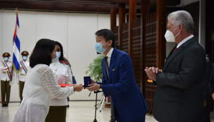Daren Tang, director general de esa organización, y Miguel Díaz-Canel Bermúdez, Primer Secretario del Comité Central del Partido Comunista de Cuba y Presidente de la República, entregaron la distinción a los colectivos de inventores al frente de los inmunógenos contra la COVID-19.