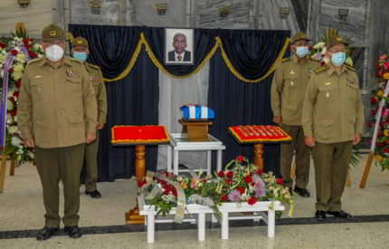 En el Panteón de los Veteranos, de la Necrópolis de Colón, rindieron guardia de honor ante sus restos mortales el miembro del Buró Político del Partido, general de cuerpo de ejército Álvaro López Miera, ministro de las Fuerzas Armadas Revolucionarias, y los viceministros de las far, así como familiares y amigos.
