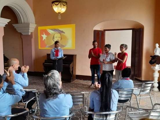 Este jueves, alumnos del preuniversitario Julio Antonio Mella y la escuela secundaria básica Marcos Ramírez fueron protagonistas del coversatorio Un museo de puertas abiertas al futuro, en el que se resaltaron la significación y los retos de la Casa Natal, a partir de la intervención del máster Ludín Fonseca, historiador de la ciudad de Bayamo.