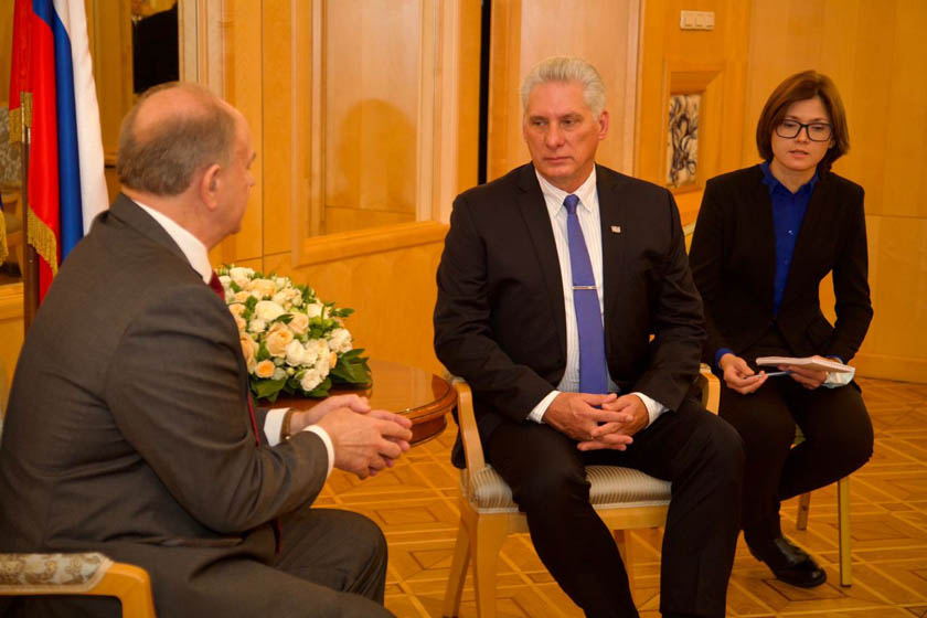 El Primer Secretario del Comité Central del Partido Comunista de Cuba (PCC) y Presidente de la República, Miguel Díaz-Canel, se reunió hoy con el Secretario General del Partido Comunista de Rusia, Guennadi Andrèyevich Ziugànov, en el ámbito de la visita oficial de una delegación de alto nivel de la isla a la nación euroasiática.