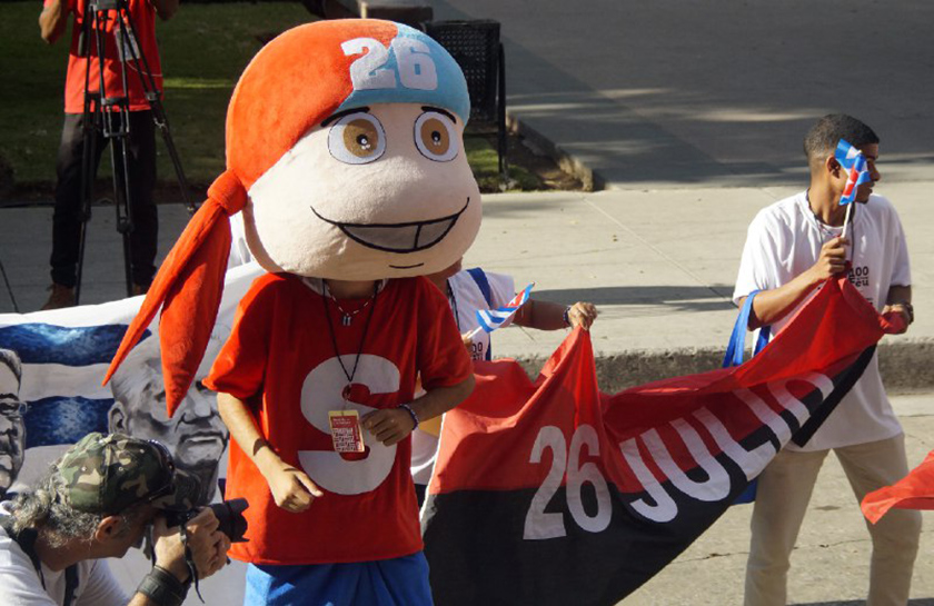 Allí se agruparon 300 delegados en representación de las 15 provincias cubanas y el municipio especial de Isla de la Juventud, quienes acompañados por banderas y consignas, subieron la histórica escalinata de la UH.