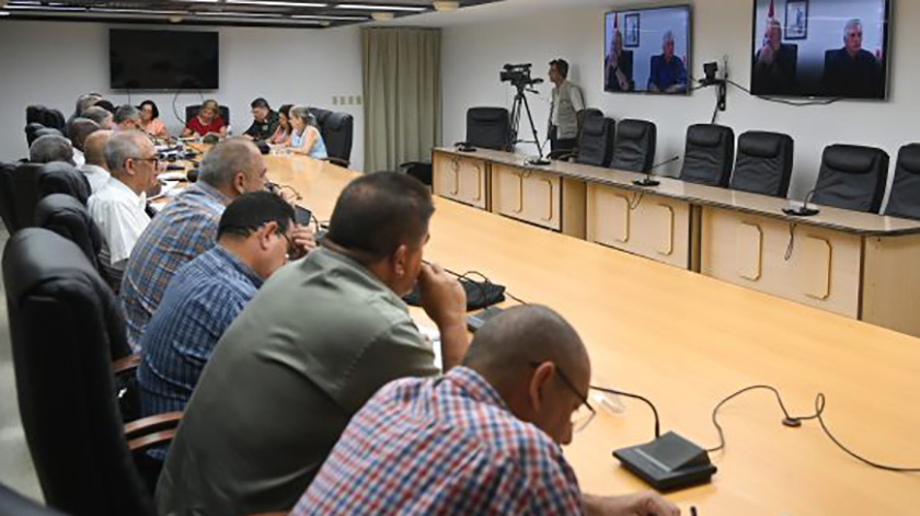 En la reunión también participaron Esteban Lazo Hernández, Presidente de la Asamblea Nacional del Poder Popular, y Salvador Valdés Mesa, Vicepresidente de la República; además de viceprimeros ministros y titulares y vicetitulares de varias carteras.