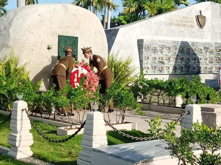 Una ofrenda floral a nombre del pueblo de Cuba se depositó en la roca monumento que atesora sus cenizas, desde diciembre del 2016, en el cementerio Santa Ifigenia.