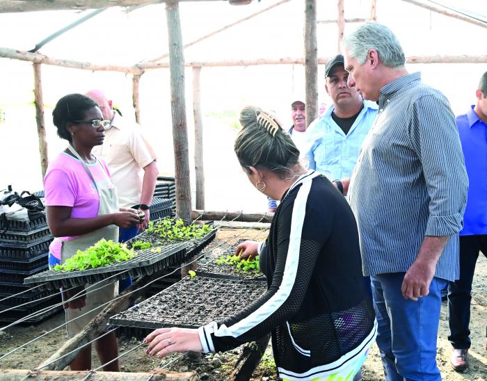 En este segundo punto, ubicado en el consejo popular de Tahón, el mandatario dialogó con directivos y trabajadores, indagó por modos de pago y estilos de trabajo, y compartió su certeza de que la empresa estatal socialista, si echa anclas en tareas agrícolas para producir alimentos, y se propone impactar con eficiencia en el bienestar de quienes le circundan, puede lograrlo.