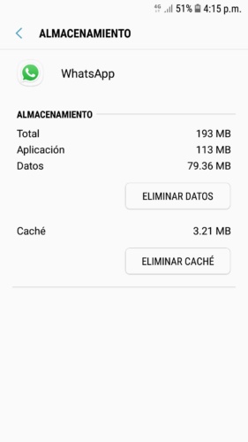 Presiona algunos segundos el icono de Whatsapp hasta que despliegue un menú en el cual debes seleccionar INFORMACIÓN DE LA APLICACIÓN y después, en ALMACENAMIENTO oprime el botón ELIMINAR CACHÉ.
