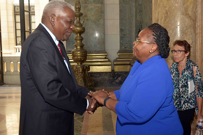 La Habana.— Esteban Lazo Hernández, miembro del Buró Político y Presidente de la Asamblea Nacional del Poder Popular y del Consejo de Estado, recibió la víspera en el Capitolio Nacional a Esperança Laurinda Francisco Nhiuane Bias, su homóloga de Mozambique.