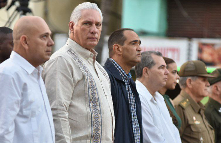 Con la presencia de Miguel Díaz-Canel Bermúdez, Primer Secretario del Comité Central del Partido Comunista de Cuba y Presidente de la República, tiene lugar en esta capital el acto conmemorativo por el aniversario 64 de la proclamación del carácter socialista de la Revolución cubana.