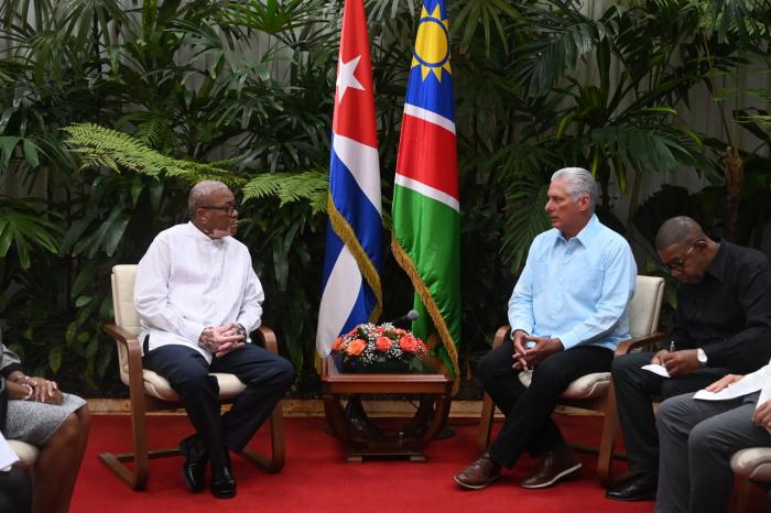 Díaz-Canel subrayó la importante contribución del diplomático namibio a la consolidación y desarrollo de las históricas relaciones bilaterales, al mismo tiempo que reiteró el apoyo, el cariño, el respeto y la solidaridad que Cuba y el pueblo cubano siempre profesan a la hermana nación namibia.