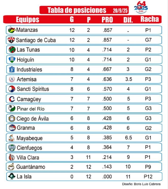 Luego de varios días de acecho, los indómitos extendieron su racha victoriosa a siete éxitos y aprovecharon el descalabro matancero para darles alcance en lo más alto del ordenamiento general, ambos con balance de 12-2.