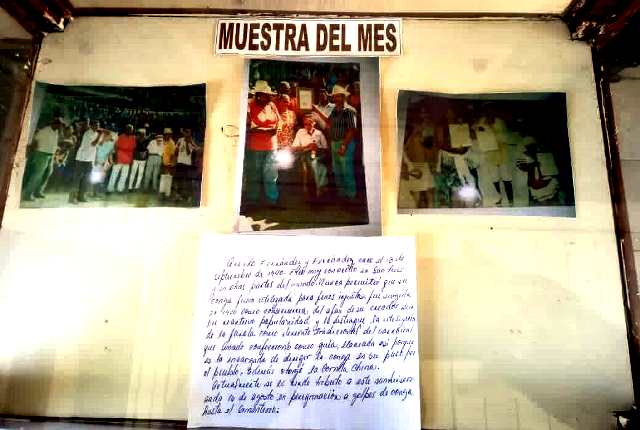 En una pequeña vidriera permanecen durante 30 días, objetos, fotos, información de sucesos, mártires y héroes; también se muestran manualidades pertenecientes a artesanas locales, referencias de agrupaciones musicales.