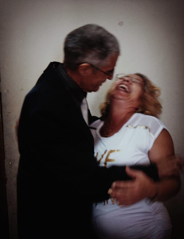 Hoy le pedí esta foto a mi abuela porque aunque esté borrosa, la necesitaba para poder escribir esta crónica, ya que hablar de las personas de edad es hablar de la memoria viva de nuestra familia. Y en esa foto veo la mezcla de sensualidad, amor y alegría que siempre vi en mis abuelos.
