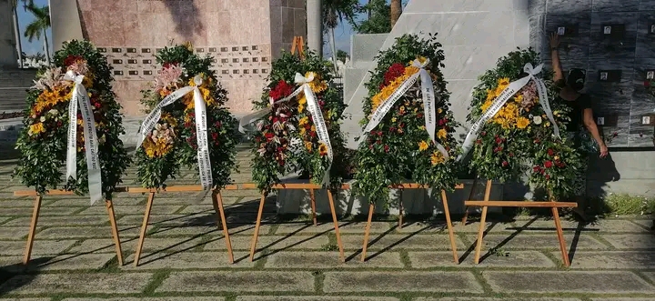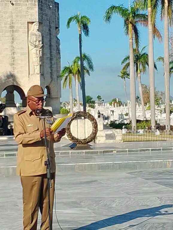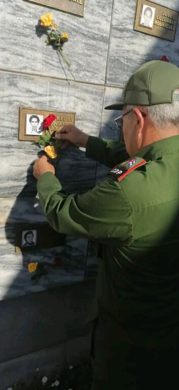Como parte del tributo ofrendas florales a nombre del General de Ejército Raúl Castro Ruz líder de la Revolución Cubana, de Miguel Díaz Canel, Primer Secretario del Comité Central del Partido Comunista de Cuba y Presidente de la República, de la ACRC, de los Familiares y del Pueblo de Cuba, se depositaron en el Panteón de los Caídos por el Internacionalismo.