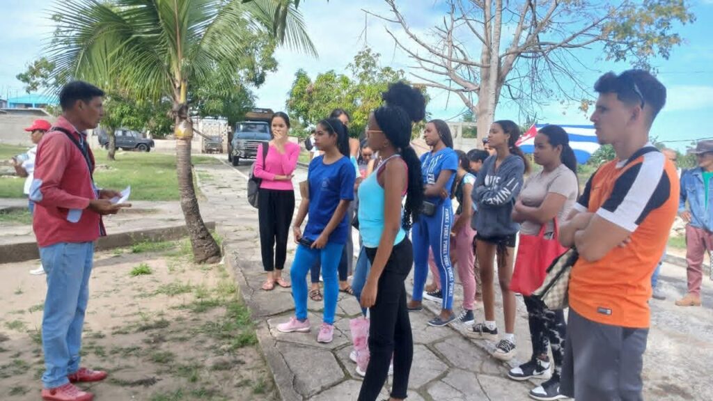 En San Luis, muchachas y muchachos del Centro Universitario Municipal y de la facultad de Ciencias médicas, junto a profesores y miembros del Consejo de Defensa Municipal, acompañaron a oficiales de las Fuerzas Armadas Revolucionarias en su sede Universitaria.