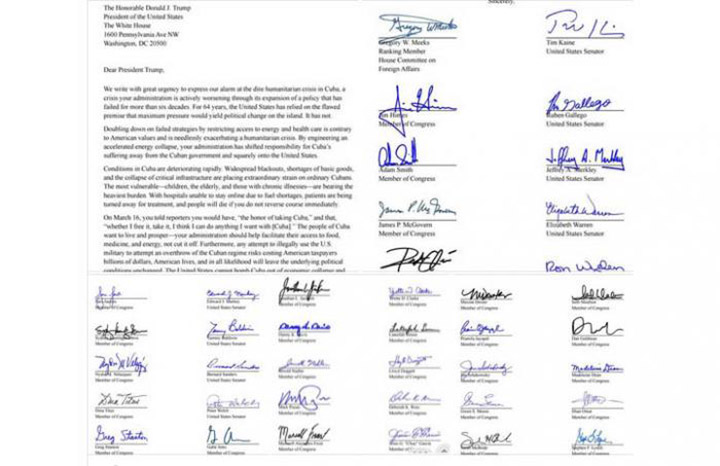 “El bloqueo ilegal de combustible impuesto por los Estados Unidos a Cuba —situada a solo 90 millas al sur de los Estados Unidos— se suma al embargo más prolongado de la historia mundial y está causando un sufrimiento incalculable al pueblo cubano”, expresaron en su declaración publicada en la página oficial de Jayapal.